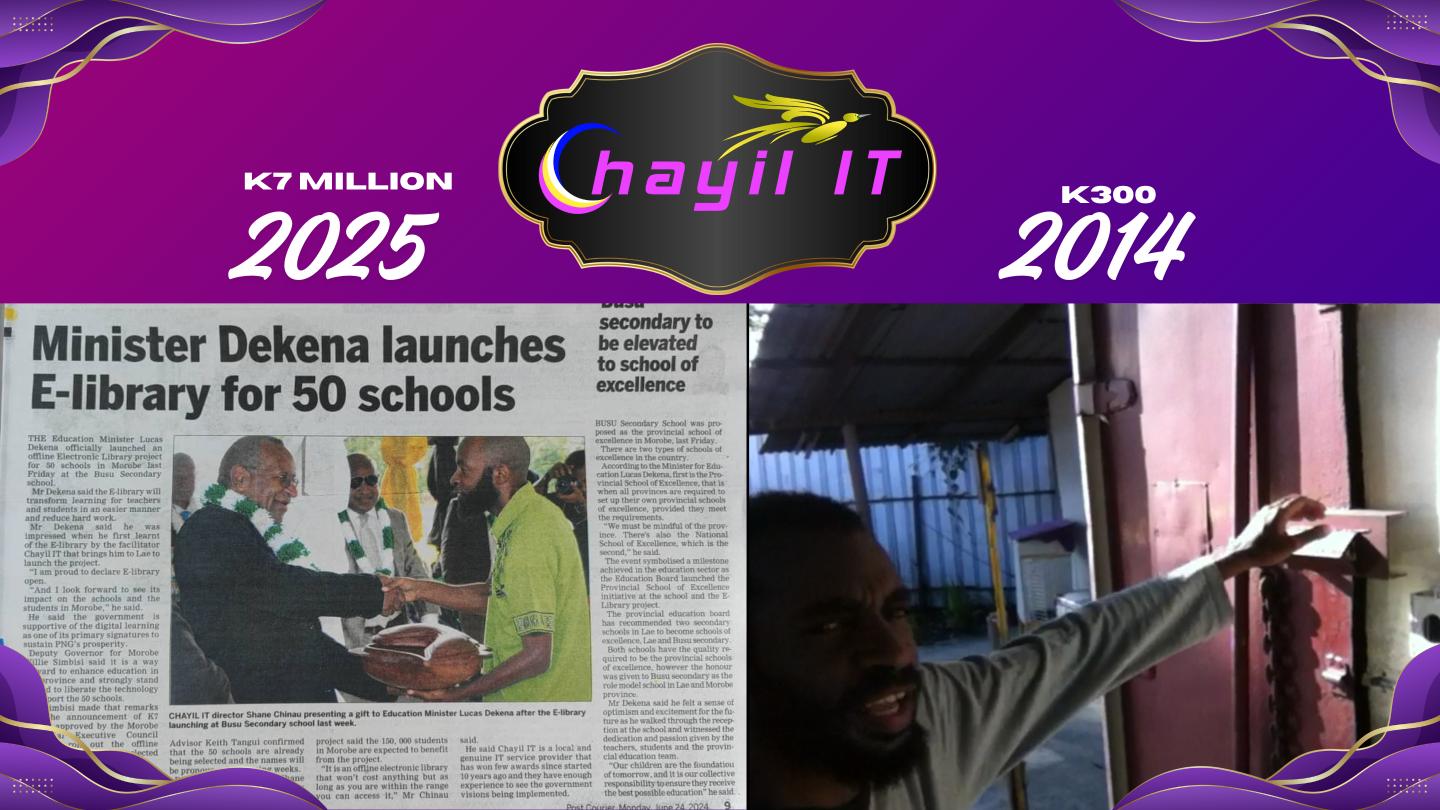 - First International Expansion: Fiji became the first country outside PNG to receive a Chayil IT e-library.