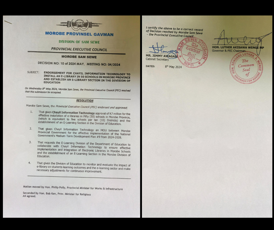 The story of Chayil Information Technology entered a historic new chapter in 2024, when Morobe Province officially approved a K7 million E-Library Project to be rolled out across 50 schools.